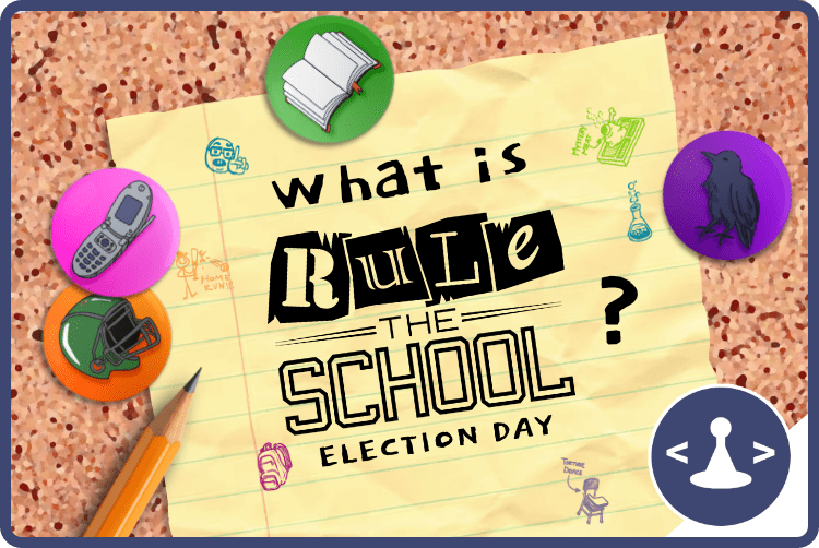 Rule the School: Election Day is a two player (currently testing four players!), area majority and tableau building board game. It plays in about 30-45 minutes, and is targeted for players ages 12+.